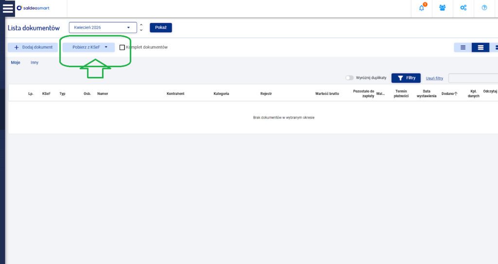 Faktury kosztowe będą pobierane automatycznie co godzinę. Możesz też sam kliknąć pobranie dokumentów z KSeF